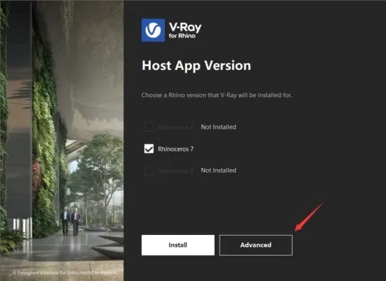 4.自动识别已安装的Rhino版本,点击Advanced。