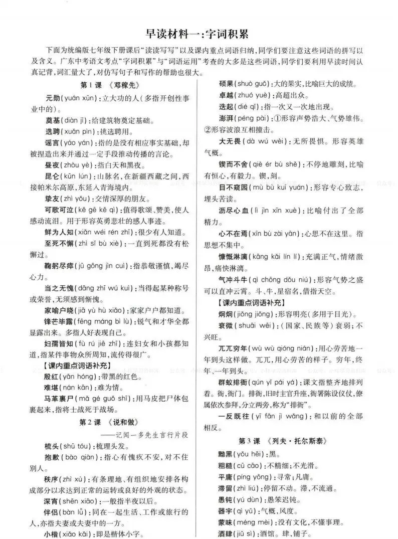 今天分享:26春七年级语文下册《早读材料》课本同步!高清电子版可打印!有抓紧领取一份打印出来🖨️给孩子练一练吧