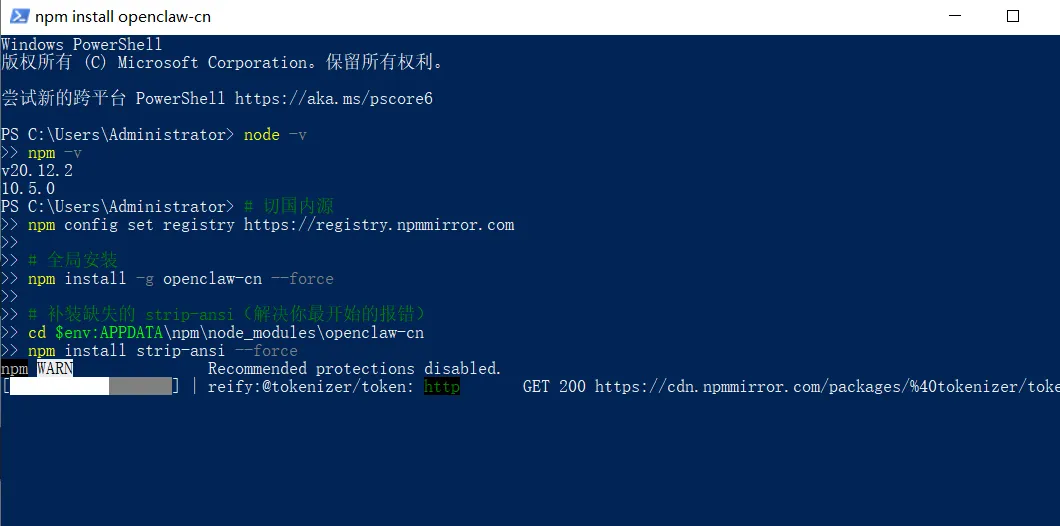 下载 Node.js 安装依赖 安装龙虾本体 安装完自动启动 伤心坏我了