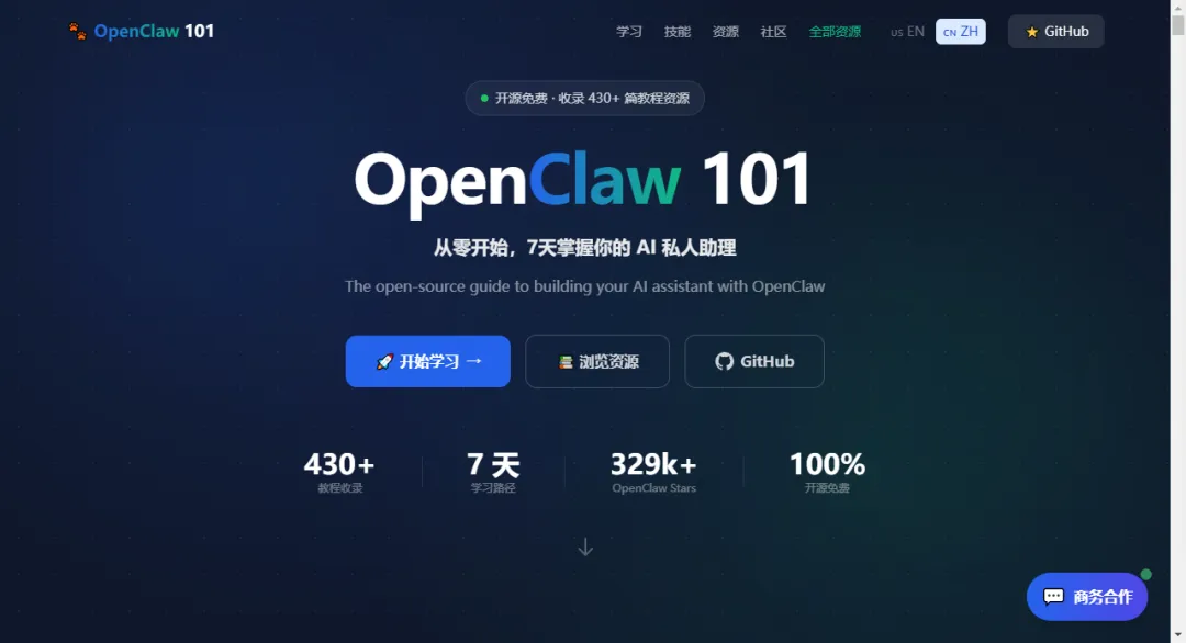 OpenClaw101 https://openclaw101.dev/zh OpenClaw101是一个专注于 OpenClaw(开源 AI 助理平台)的中文资源聚合与学习站,旨在为中文用户提供从入门到精通的完整学习路径、最新社区动态和安全实践指南。
