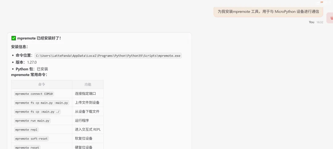还需要安装mpremote 工具,用于与 MicroPython 设备进行通信。