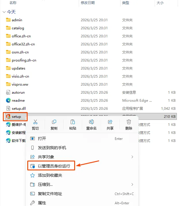 3.解压后,找到文件夹中的setup文件,右键以管理员身份运行安装