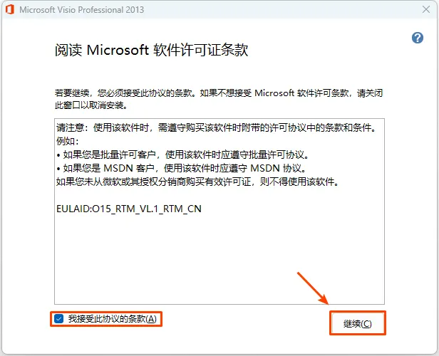 4.接受条款,点击继续。
