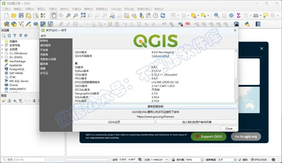 QGIS(QuantumGIS)是一款免费开源的桌面地理信息系统GIS软件,支持主流GIS数据格式,基础数据处理、地图制作功能齐全,可通过社区开发插件扩展高级功能(如SAGA GIS集成);支持自定义符号、布局排版,可实现印刷级地图输出;兼容开源生态(PostGIS、GeoServer),适配中小规模数据处理与分析需求。凭借免费、开源、功能强大的优势,越来越受到企事业单位、高校科研机构和个人开发者的青睐。QGIS遵循GPL 2.0协议,用户可以自由下载、使用、修改和再发布软件,只要衍生软件继续遵循 GPL 协议即可。