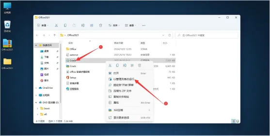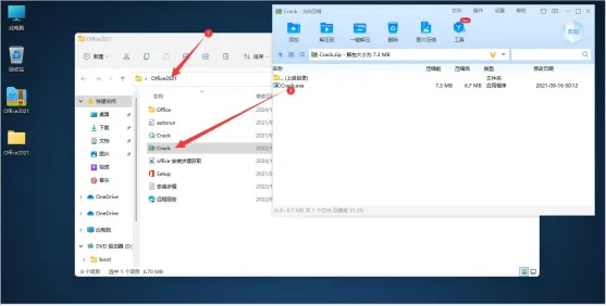 5. 回到Office2021文件夹,把Crack压缩包文件解压出来!