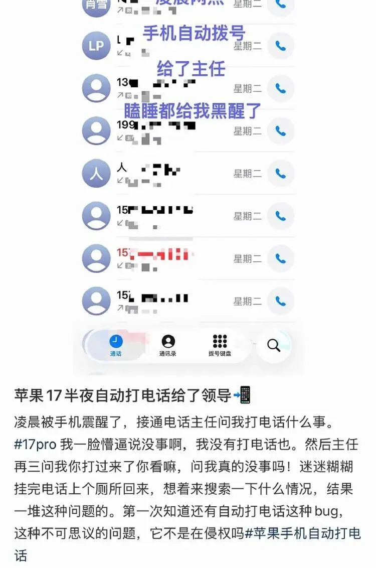 明明自己没有拨打过电话,但竟然有通话记录?究竟是自己手滑误拨出了电话,还是手机有Bug呢?近期一些iPhone用户陷入了这样的困惑之中。