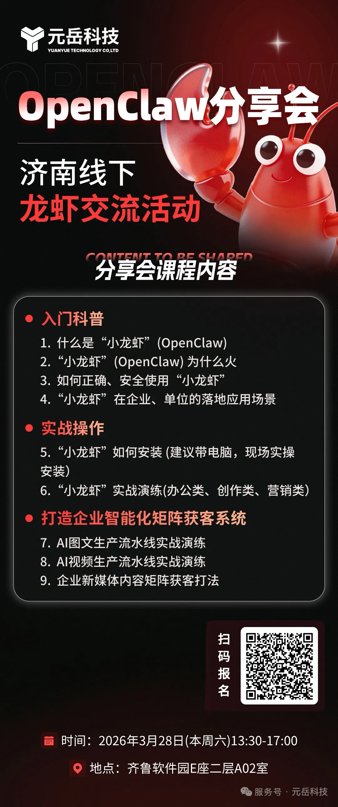 元岳科技「OpenClaw 小龙虾线下分享会」重磅来袭!
