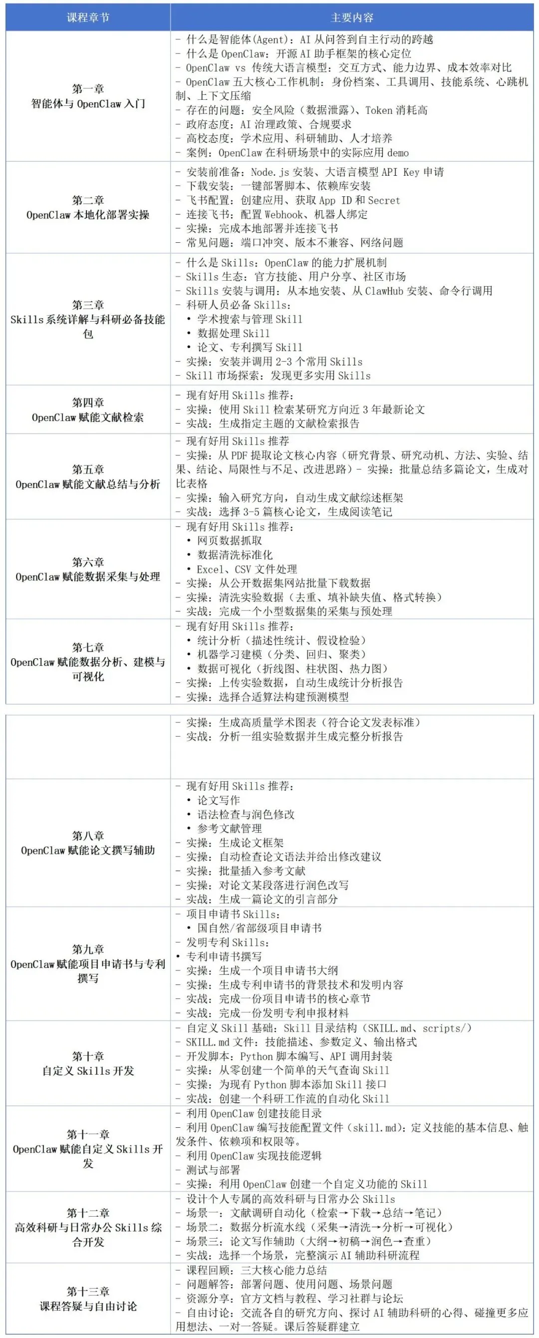 课程内容完全围绕科研场景设计,覆盖多源文献智能分析、科研数据预处理、建模与可视化、论文/项目申请书/发明专利专利等科研专属功能,让OpenClaw工具真正贴合科研场景需求,而非通用工具的简单套用,确保所学技能能直接应用于日常科研工作。名额仅限40人,最后15个名额,请尽快联系我们预留名额!!