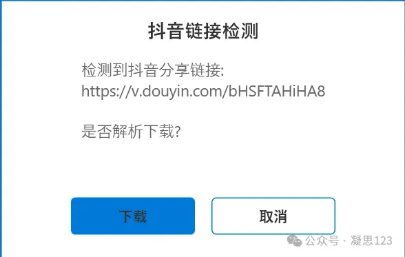 把软件打开后,只要复制了抖音网址,就能自动检测,提示下载。