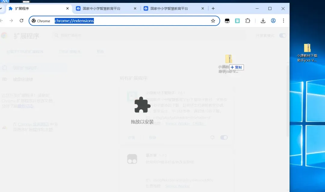 然后把压缩文件拖进谷歌浏览器