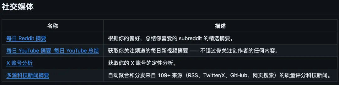 聚焦社交媒体信息的聚合、摘要与分析,核心是帮助用户高效获取核心信息,避免信息过载: