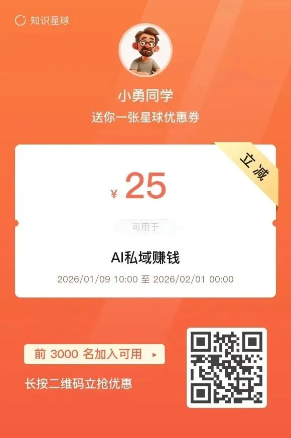 AI私域赚钱星球,73元一年。一万个星球中,连续多个月排名前3,很多大佬亲自推荐,性价比极高的星球。能免费参加几十个小项目,有教练和教程,直播答疑,打卡退还押金。很多人在这里赚到几千上万块。