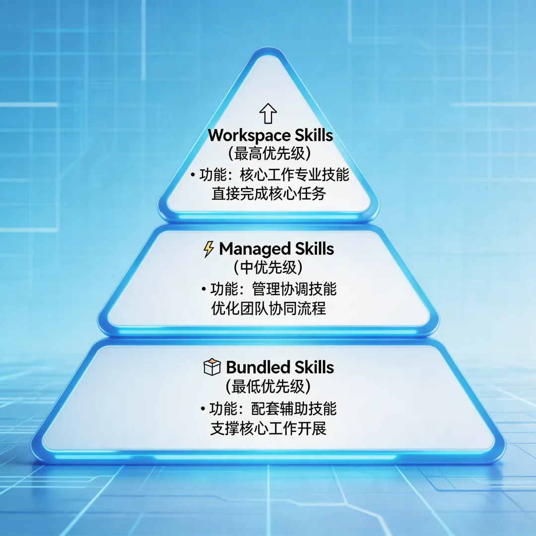 同名Skill高优先级会覆盖低优先级,这意味着你可以基于社区Skill做二次定制。