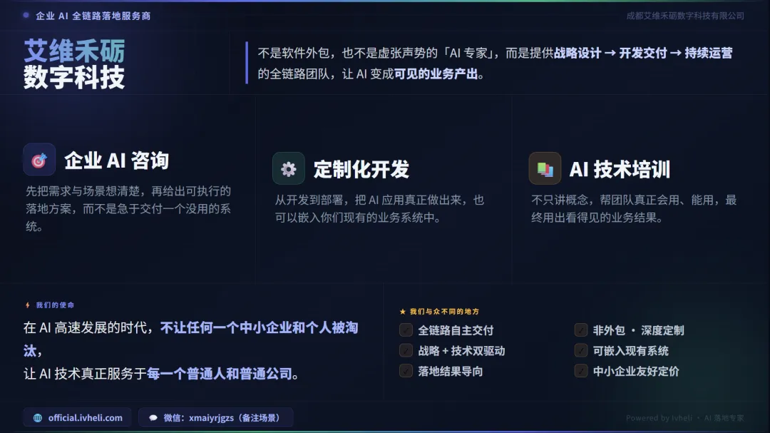 - 所属公司:成都艾维禾砺数字科技有限公司