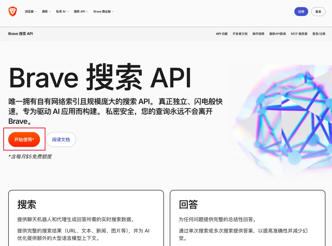 打开网站 https://brave.com/zh/search/api/