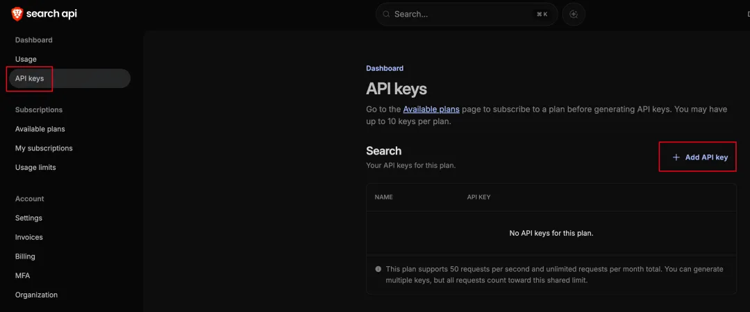 获取 Brave 的 key