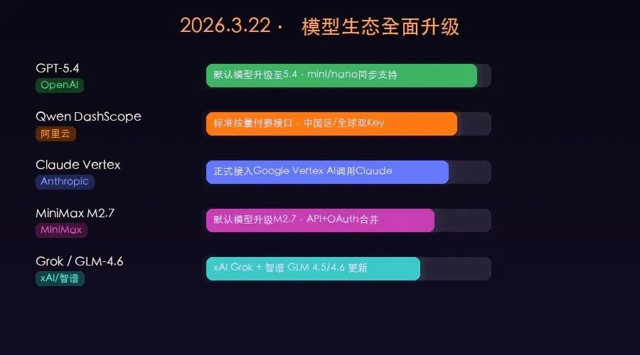 二、模型生态:GPT-5.4 登场,Qwen 全面接入