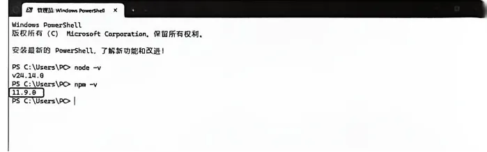 同样,若显示类似“11.x.x”的版本号,则说明npm安装成功,如图3-11所示。
