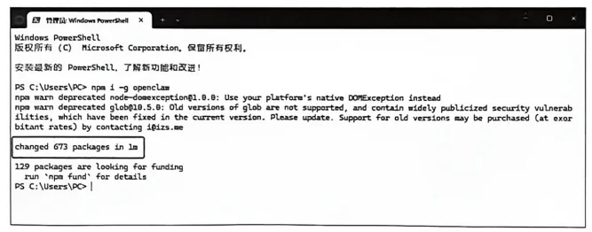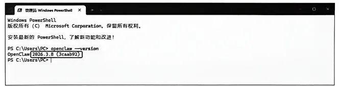 如果安装成功,终端会显示OpenClaw的版本号(版本号可能随更新而变化),如图3-32所示。