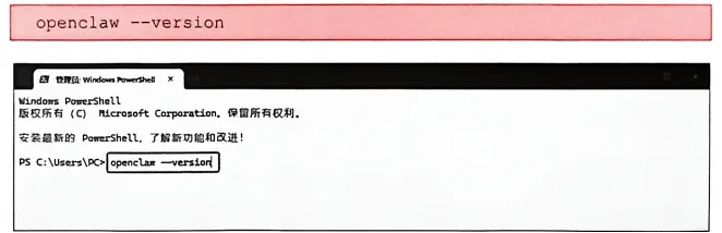 不论在哪种系统下安装,安装命令执行完成后,我们都需要确认OpenClaw 是否成功安装。关闭并重新打开终端,然后执行以下命令进行验证,如图3-31所示。
