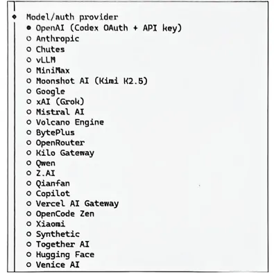 第三步为图3-36所示的模型提供商选择,这一步是配置OpenClaw的核心,是工具的AI思考、指令执行、内容生成的能力来源。这一步分为4个连续的小步骤。