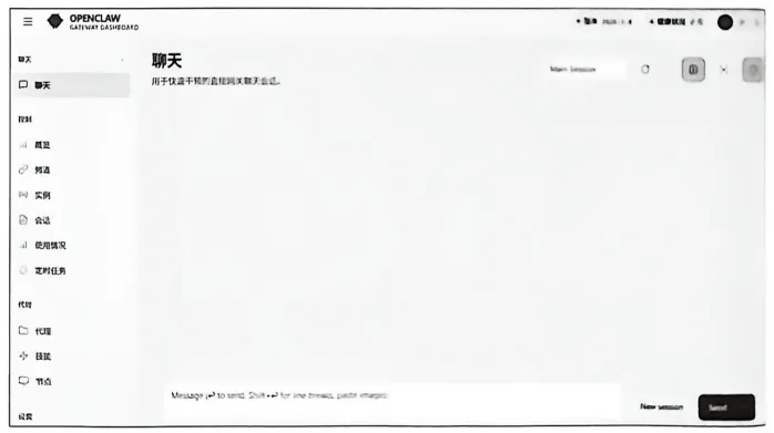 按回车键等待服务启动,然后刷新之前显示无法访问的网页,即可看到OpenClaw的Web UI对话界面。