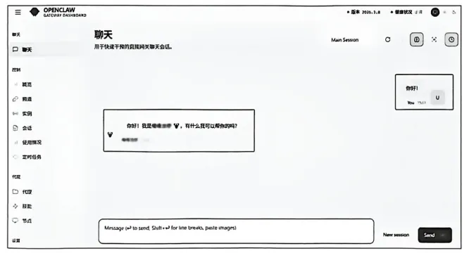 你可以通过网页的输入框发送一句“你好!”,如果OpenClaw正常回复,就代表整个初始配置流程正确,如图3-47所示。
