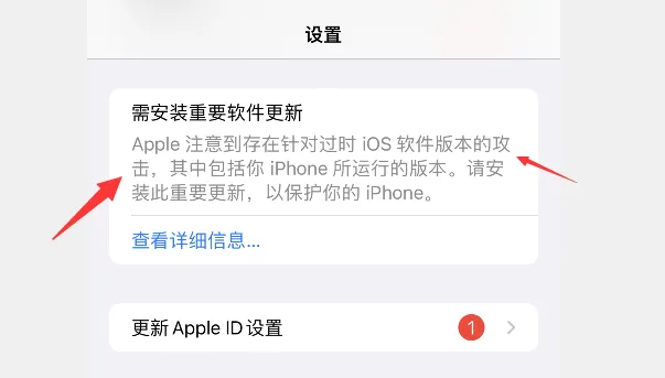 苹果发布新的公告,也在设备上推送更新通知,在旧 iOS 系统中存在网页漏洞,此漏洞能窃取你设备中的信息,危险系数极高,请更新最新 iOS 系统。