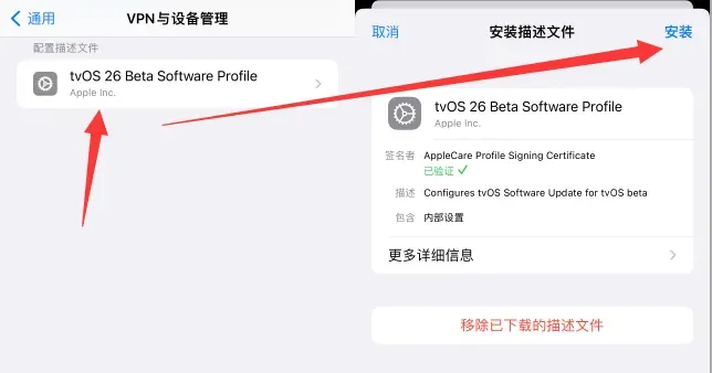 tvOS 26 安装方法: