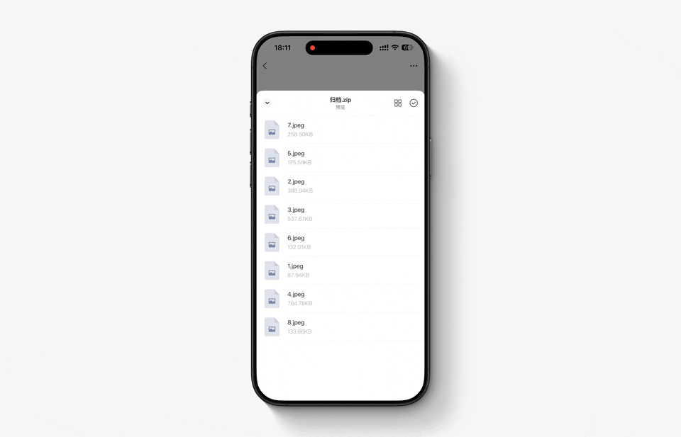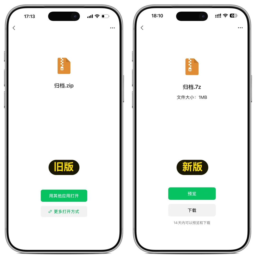 具体来说,以往在微信中收到压缩包文件时,必须先完整下载到设备,才能解压并查看内容。在下载之前,我们也无法确认压缩包内具体包含哪些文件。
