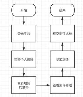 阅读测评介绍,了解参加测评的目的、形式以及要求。阅读完毕 后点击“开始测评”进入答题页面。