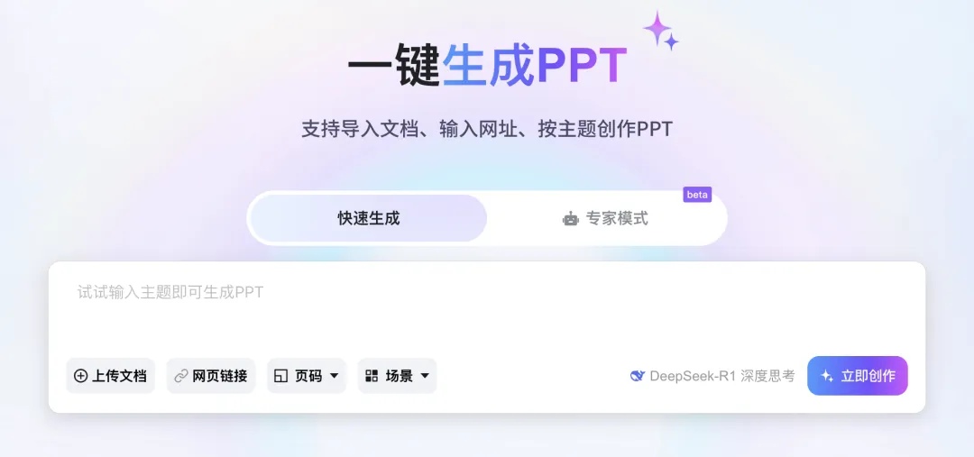 360AIPPT是360公司推出的智能PPT生成工具,依托人工智能技术,助力用户高效打造专业美观的演示文稿。用户只需输入主题或关键词,即可自,自动生成PPT标题、大纲及完整内容,免去手动撰稿环节。