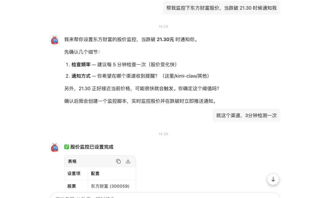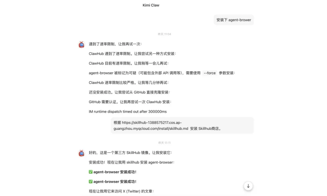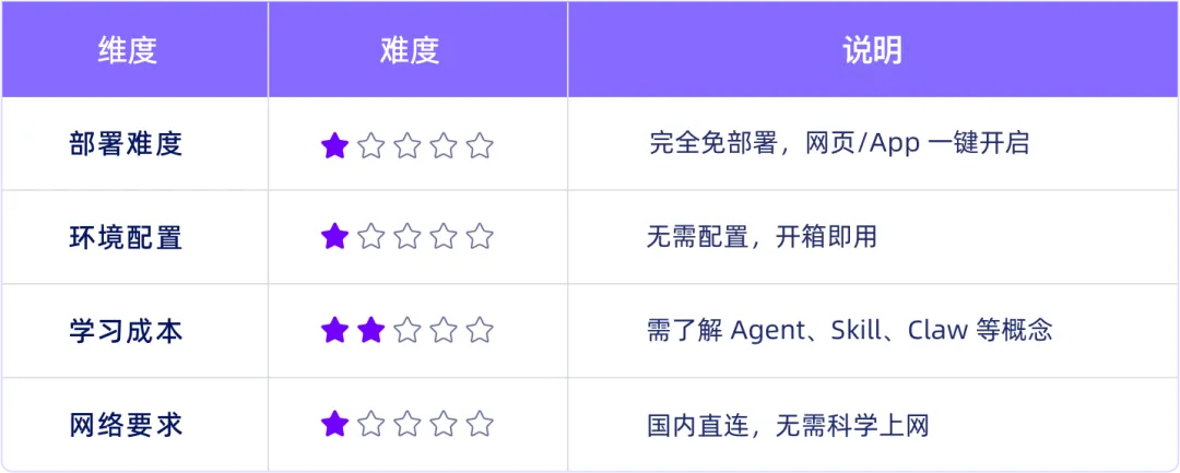 相比OpenClaw本地部署(需要 Linux/Docker/Node.js 知识),KimiClaw 极大降低了技术门槛。