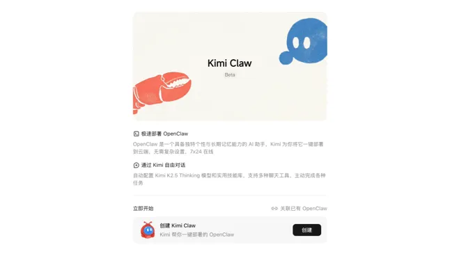 KimiClaw 是月之暗面推出的 OpenClaw 云端托管版本,定位为面向大众用户的 AI Agent 助手。