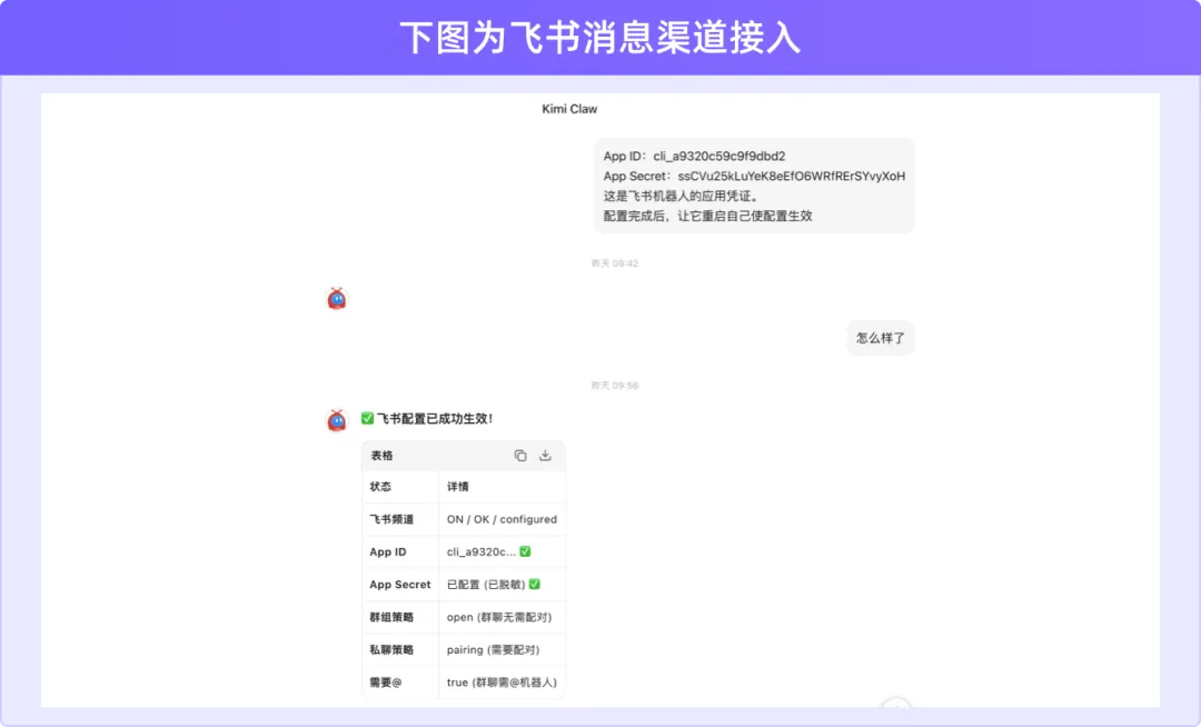 KimiClaw上提问:如何接入飞书