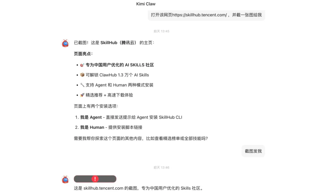 打开该网页 https://skillhub.tencent.com/ ,并截一张图给我,结果图片发不过来,尝试了几次都没成功。