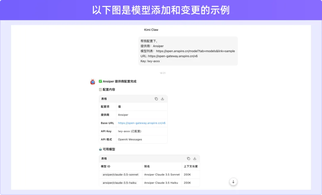 自动配置Kimi K2.5 Thinking 模型并自动关联 Kimi Code 会员权益额度