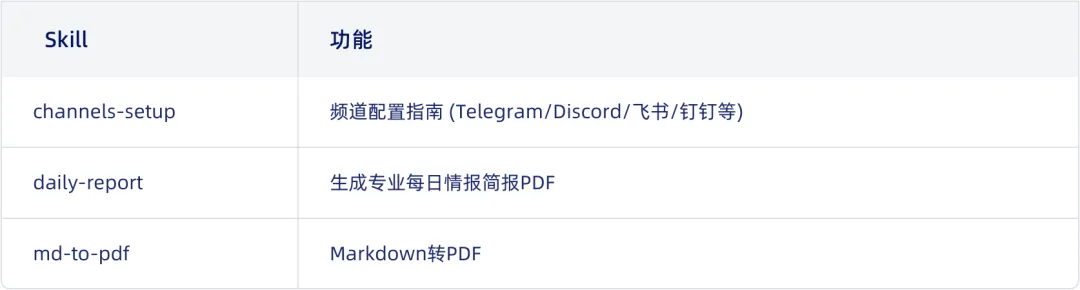 功能二:内置Skill清单