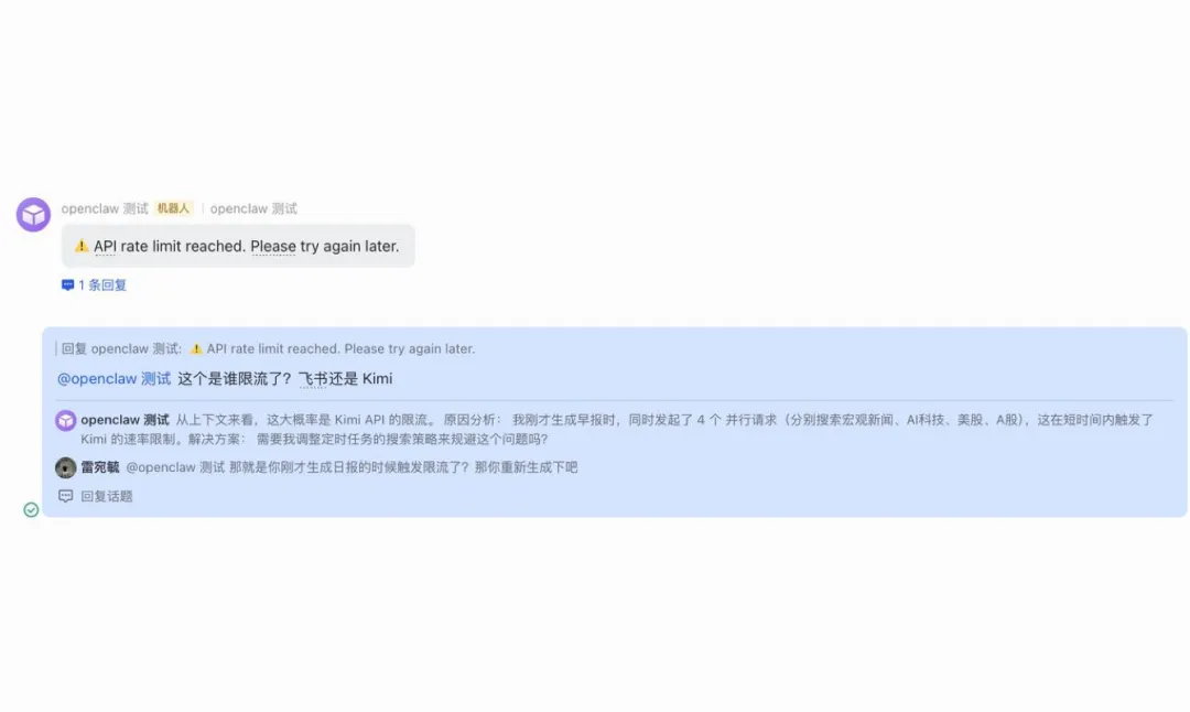 依赖外部 tool 异常(比如 kimi-search限流)