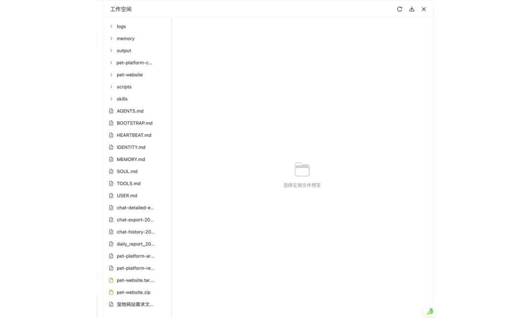 支持完整 workspace 文件夹下载到本地