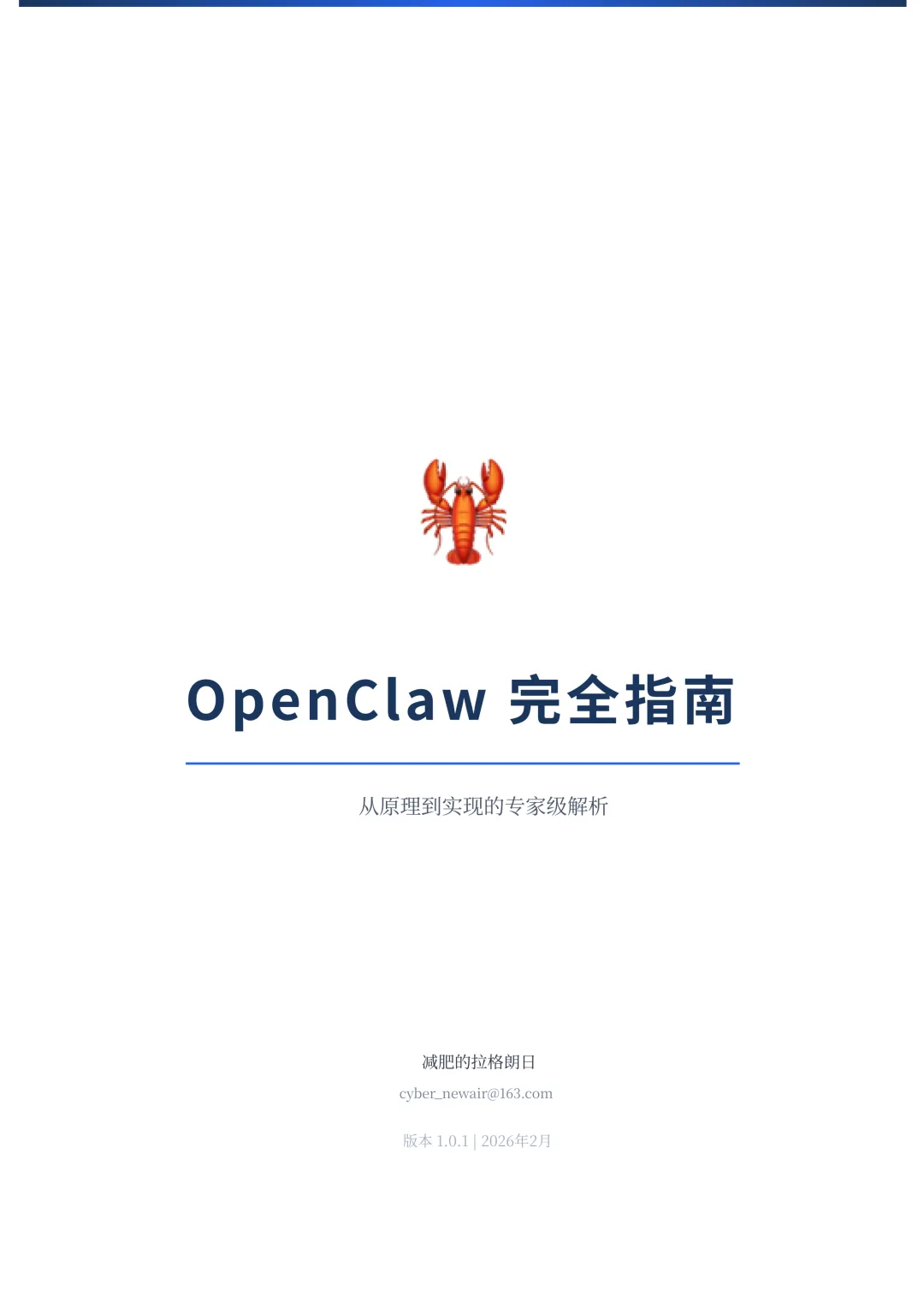 《OpenClaw完全指南》是一份由作者“减肥的拉格aw”撰写的专家级技术文档,旨在系统化地解析OpenClaw这一开源自托管个人AI助手网关的原理与实现。文档全面覆盖了OpenClaw的定义、技术背景、核心架构、内部工作机制、关键功能模块以及进阶配置主题。