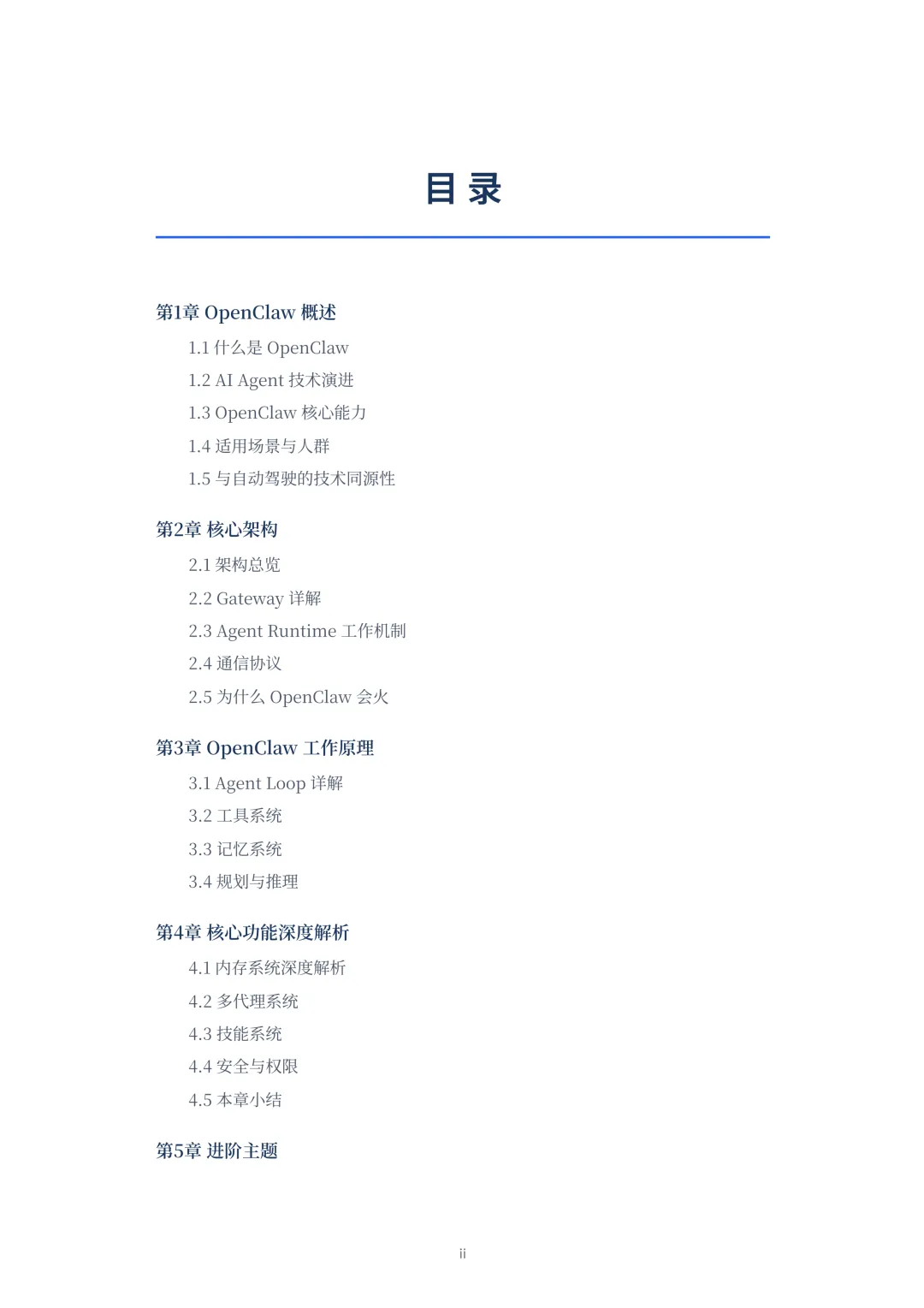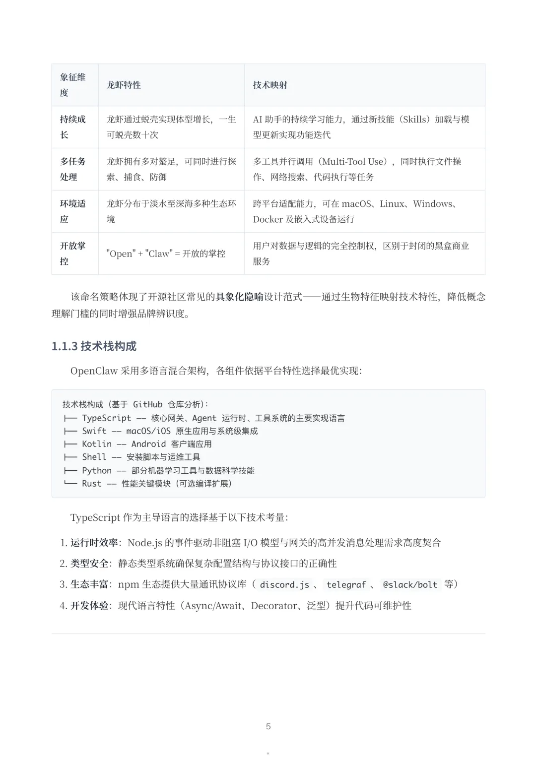 其核心结论是,OpenClaw并非简单的聊天机器人封装,而是一个将大型语言模型的认知能力与真实世界数字工具进行可靠、安全、可扩展桥接的完整基础设施平台,代表了个人AI助手的工程化实现范式。文档基于2026年2月的版本,内容详尽,包含大量图表、代码示例和技术细节。