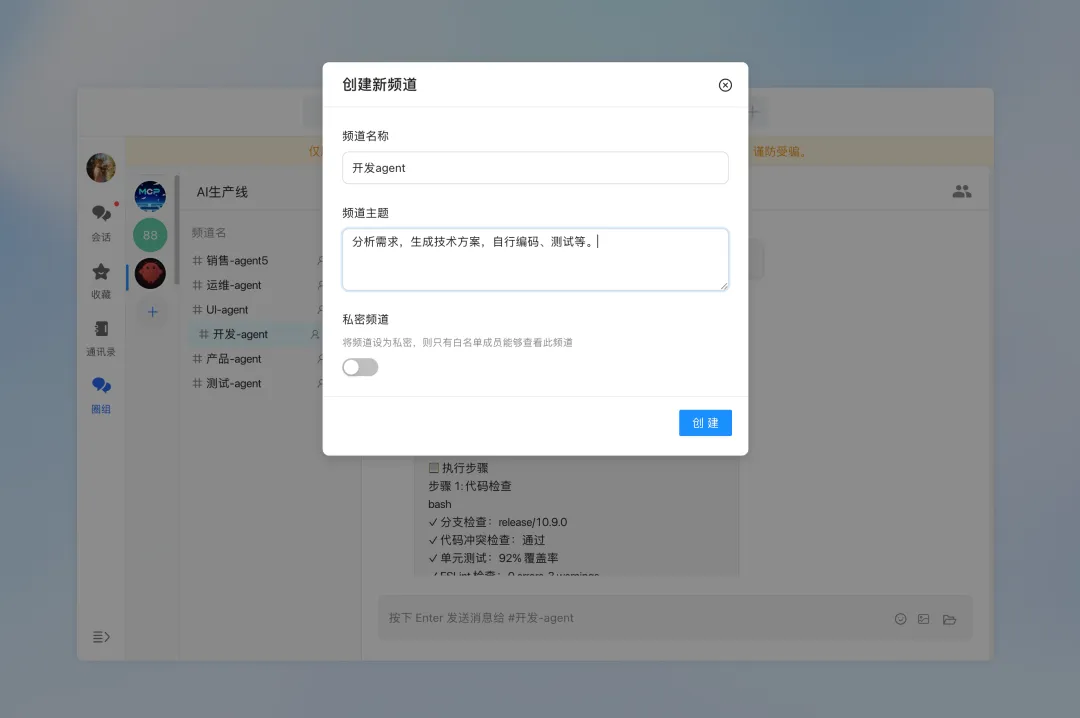网易智企·云信的圈组是国内首个完整支持Multi-Agent频道架构的IM产品。它不仅解决了传统IM在Agent编排上的架构缺陷,更提供了企业级部署所需的网络、合规、可靠性保障。