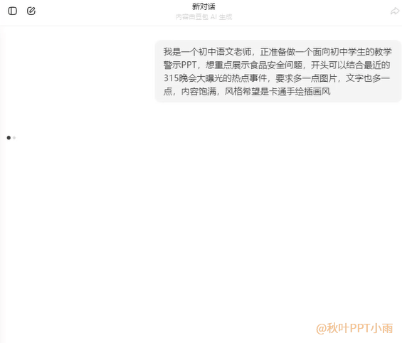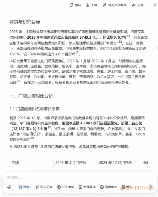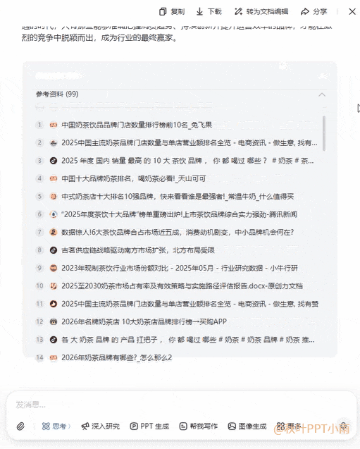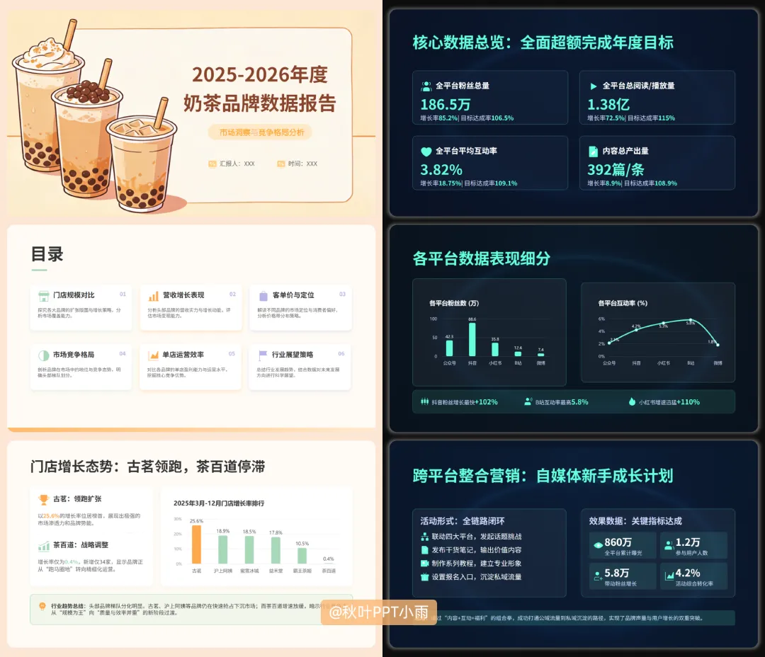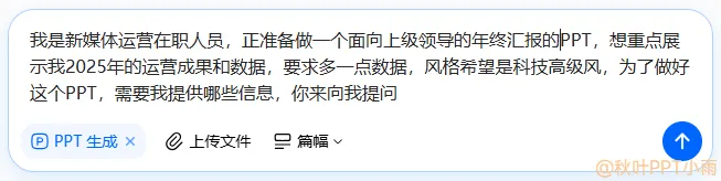 视频操作太快没看清?没关系,图文教程我们也给你安排上了~我们只需要打开豆包,选择PPT生成:想让PPT不千篇一律,核心就记住这个万能提示词公式:直接套用,接下来豆包会自己搜索资料、理解内容、匹配图片、设计排版:不是硬套模板,而是真的在帮你思考:这才是AI做PPT的正确打开方式!但有人问,像个人年终总结、述职报告这种网上没有资料的PPT,怎么让AI帮我们做呢?方法当然是有的~还是上面提到的万能公式,保持不变,在结尾多加一句话:为了帮我做好这个PPT,需要我提供哪些信息,你来向我提问。然后我们老老实实地回答它的问题,就能轻松搞定工作总结!如果你的PPT需要大量调查和数据,那就先让豆包跑一份深度调查报告:它就会给你搜索更多的资料信息:下载报告上传给豆包,再套万能公式:一份数据扎实,逻辑严谨的专业PPT也能快速完成:生成的PPT全页可编辑,可以换图片、改文字、调动画,支持一键下载。最贴心的是,每一页都自动配好了演讲稿,我们汇报照着念,效率直接拉满!以前熬夜做的PPT,现在3分钟搞定!好工具不是用来收藏的,是用来用的!学完了赶紧去试试,在这个 AI 时代,比别人快一步,就是你的核心竞争力。不过,千万不要以为掌握了 AI 工具就能一劳永逸,懂逻辑、会贴合汇报场景优化,才能做出「既好看又有用」的 PPT。而这,正是《秋叶 PPT 3 天实战营》老师会教给你的,不仅有 AI 工具玩法,更有 PPT 制作思维,助力你的工作汇报惊艳全场!名师带学+在线直播作业实操+助教答疑原价 99 元今天扫码免费报名👇👇👇学习打卡还能领取: