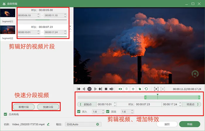 步骤3:录制完成后,若对视频有简单剪辑需求,比如添加淡出结尾特效,或裁剪开头、结尾的多余部分,无需额外安装剪辑软件,直接点击软件内的高级剪辑工具即可。该工具提供现成的特效模板和基础剪辑功能,可满足日常优化需求。