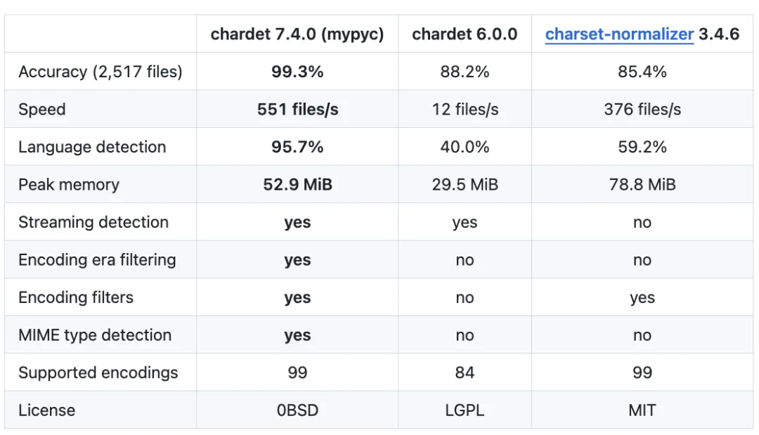 不久前,我们曾报道过,作为每月下载量超过 1.3 亿次、被无数软件直接嵌入的 Python 经典编码检测工具 chardet 深陷舆论漩涡之中。
