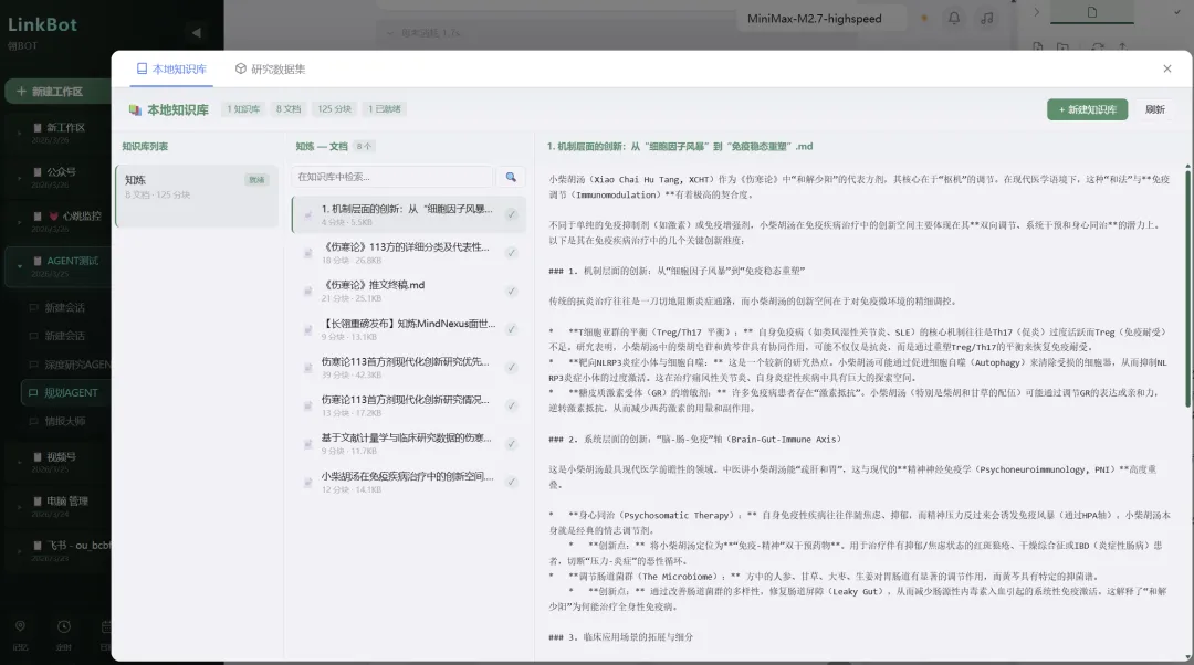 支持市场调研与竞品分析、数据报表自动生成、深度研究报告生成,以及知识库构建、自建数据库与检索。