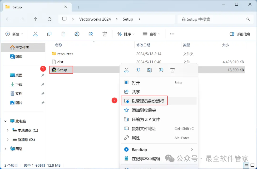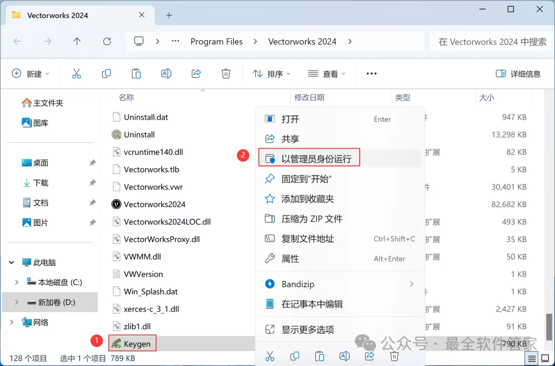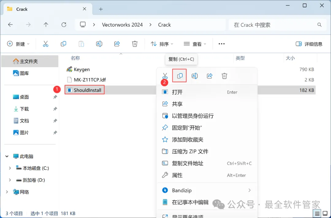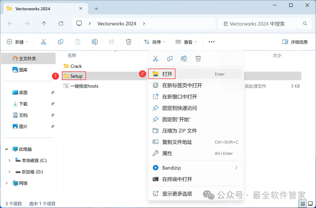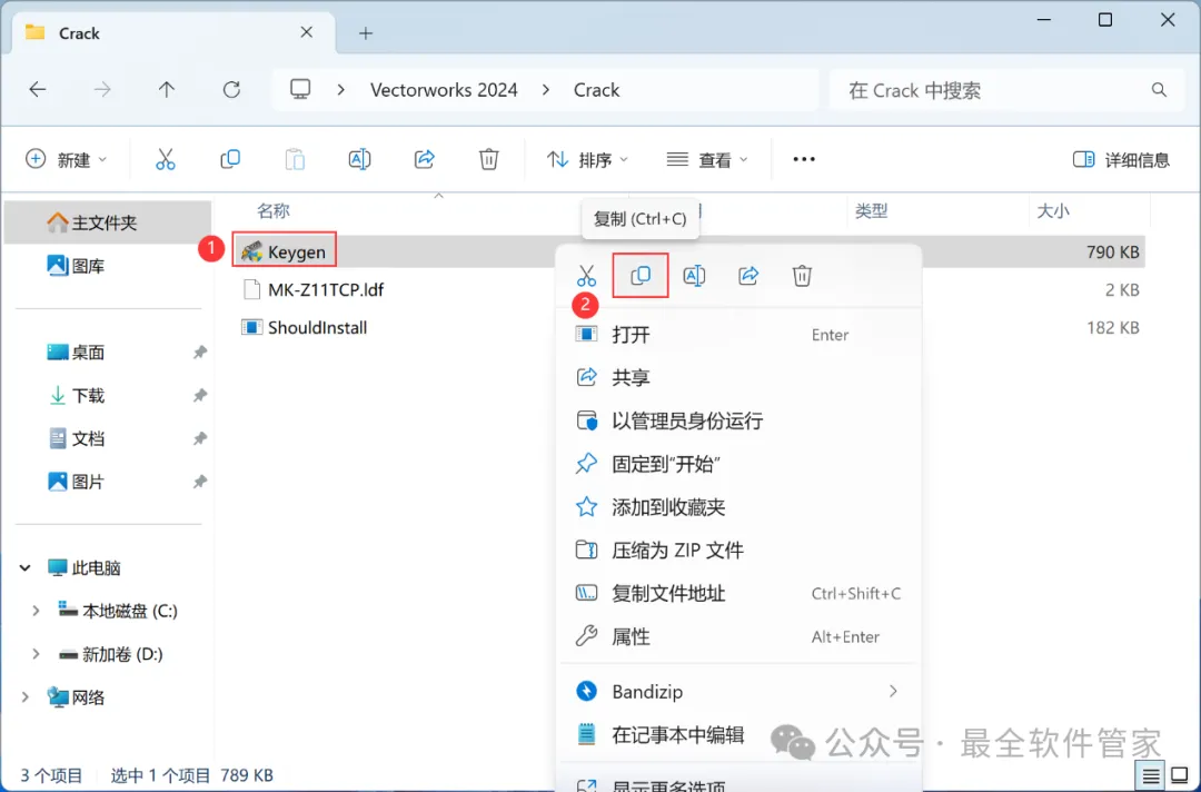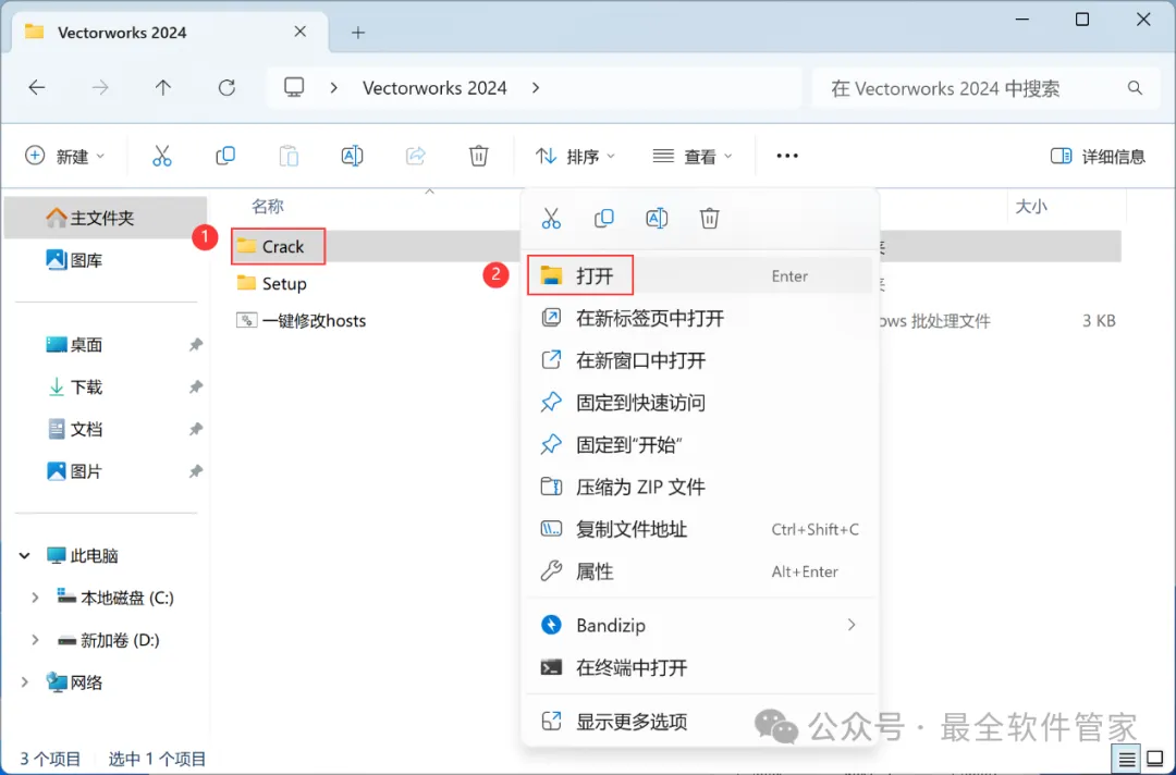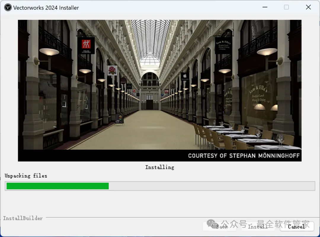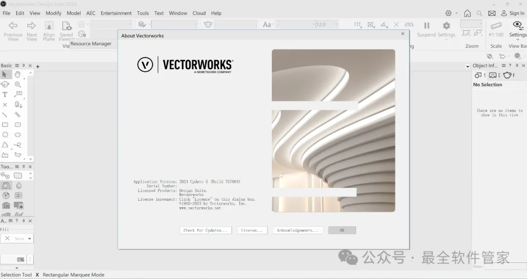 Vectorworks 2024软件安装教程附安装包下载软件简介Vectorworks 2024是一款功能强大的3D建模软件,此软件提供了许多精简但强大的建筑及产品工业设计所需的工具模组,在建筑设计,景观设计,舞台及灯光设计,机械设计及渲染等方面拥有专业化性能,提供了许多精简但强大的建筑及产品工业设计所需的工具模组。在建筑设计,景观设计,舞台及灯光设计,机械设计及渲染等方面拥有专业化性能。安装需知[软件名称]:Vectorworks 2024[软件大小]:4.44G[软件语言]:中文简体[安装环境]:Win7及以上版本[下载地址]:公众号内回复:Vectorworks[不限速下载]:免费获取百度网盘不限速下载工具。公众号内回复:不限速[注意事项]:安装前请关闭网络、杀毒软件和防火墙,否则易安装失败。公众号内回复:1[解压软件]:小编用的解压软件是Bandizip,获取Bandizip软件安装包。公众号内回复:2安装教程1、下载Vectorworks 2024软件安装包到电脑上,右键选择【解压到Vectorworks 2024\】2、右键【打开】解压后的文件夹3、找到【一键修改hosts】程序,右键选择【以管理员身份运行】它4、点击右上角【关闭按钮】5、找到【Setup】文件夹,右键【打开】它6、找到【Setup】应用程序,右键选择【以管理员身份运行】它7、点击【Next】8、回到Vectorworks 2024文件夹,找到【Crack】文件夹,右键【打开】它9、找到【shouldInstall】文件,右键点击【复制按钮】10、打开安装包路径:Vectorworks 2024/Setup/resoures/Tools,再右键文件夹的空白处,点击【粘贴按钮】11、点击【替换目标中的文件】12、回到软件安装界面,输入框输入:EZTMKS-NZMCOS-WMZMC0-Z11TCP,再点击【Next】13、点击【选择文件按钮】14、找到并选中安装包Crack文件夹下的【MK-Z11TCP.ldf】文件,再点击【打开】15、点击【Next】16、勾选【我接受】,再点击【Next】17、点击【Next】18、软件默认安装在C盘,可自定义更改软件安装位置,这里小编选择安装在D盘;点击【Next】19、点击【Install】20、软件安装中,稍等片刻21、不勾选【Launch…】,再点击【Finish】22、回到Crack文件夹,找到【Keygen】程序,右键点击【复制按钮】23、回到桌面,右键桌面上的【Vectorworks 2024软件图标】,点击【打开文件所在的位置】24、右键文件夹的空白处,点击【粘贴按钮】25、找到粘贴的【Keygen】程序,右键选择【以管理员身份运行】它26、密码输入:cgpersia-zmco,再点击【Proceed】27、点击【PATCH】28、点击右上角【关闭按钮】29、回到桌面,右键桌面上的【Vectorworks 2024软件图标】,点击【打开】30、软件正在打开,启动界面如下:31、点击【Cancel】32、软件打开成功,运行界面如下:33、以上就是Vectorworks 2024软件安装的全过程,要是对你有帮助的话,请为小编点个赞!免责声明:软件资源均来源于网络,仅供用户交流学习与研究使用,版权归属原版权方所有,版权争议与本公众号无关,用户本人下载后不能用作商业或非法用途,否则后果均由用户承担责任;如果您访问和下载此文件,表示您同意只将此软件用于参考、学习而非其他用途,否则一切后果请您自行承担,请于下载后24小时内删除,不允许用于商业用途,否则法律问题自行承担。如果您喜欢该软件,请支持正版软件,购买注册,得到更好的正版服务。