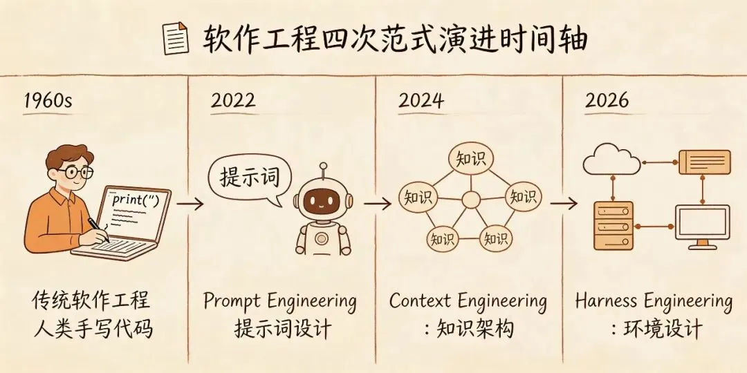 要理解 Harness Engineering,先看软件工程是怎么演进的: