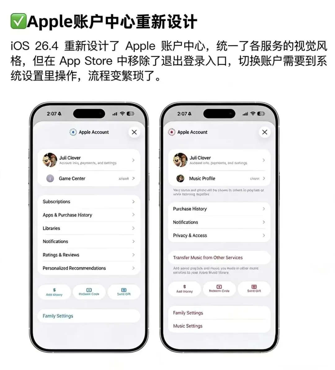 商店这边的变化有人提到,App Store切换账号的流程更细,换区的Apple ID会多一步验证,偶尔还会弹出二次确认,手里多个账号的用户操作次数会多一点,国行的AI Siri暂未到位,这一项缺口先记着,整体完成度看着可靠,愿意尝鲜的用户直接上新版本问题不大,用着iOS 26.3.1a顺手又对这些新增不太在意的人继续用下去也稳定,想要更顺的输入和更强的车载交互的人此时点下载并安装就行。